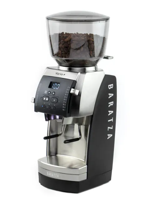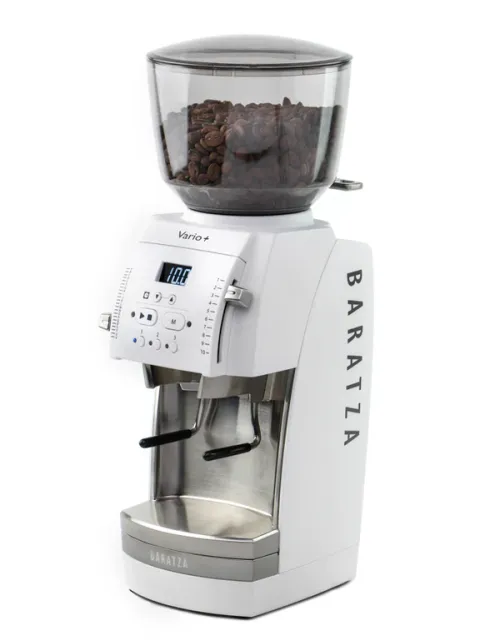 The Baratza Vario+ in Black is a coffee lover’s dream, and an updated version of an already beloved grinder. Its electronic controls allow you to program three separate doses for automatic on-demand grinding at 1.6 grams per second for fine espresso and 2.2 grams per second for coarser grounds needed for a French Press. A big step up from the Virtuoso, the Vario+ keeps the compact body style and satin finish nickel-plated accents, while making smart and useful upgrades in power, versatility, and operation. The Vario+ is home to a high-torque motor that keeps grinding quiet but quick, and ceramic burrs mean your coffee won’t overheat while being ground like with steelburrs. Of course, the Vario+ offers 220 grind settings that are easy to switch between with macro and micro changes to really take advantage of the Vario+’s multipurpose capabilities.